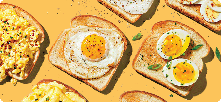 Packed with protein and a variety of vitamins like Vitamin B12 & Vitamin D, eggs are a breakfast no-brainer. Scrambled, fried or boiled—eggs can be eaten by themselves, piled onto toast or baked with veggies for a well-balanced breakfast.