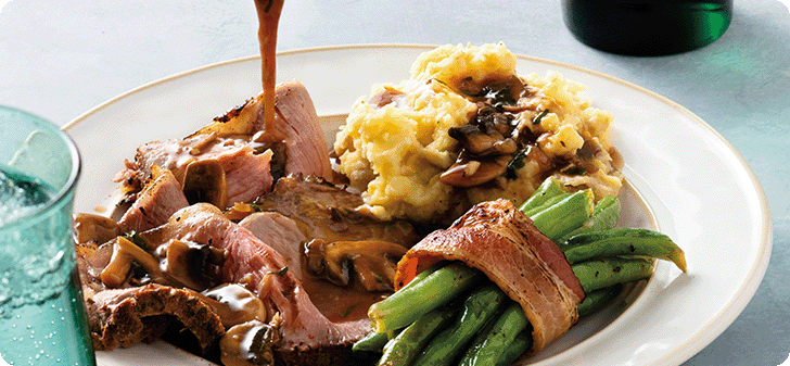 Fight the urge to dig right in! Resting completes the cooking process and disperses rich flavor throughout the roast. Tent with foil and set aside at least 30 minutes before carving. If you’re making gravy, now is the time to do so! If applicable, remove any strings. Slice meat across the grain and serve.