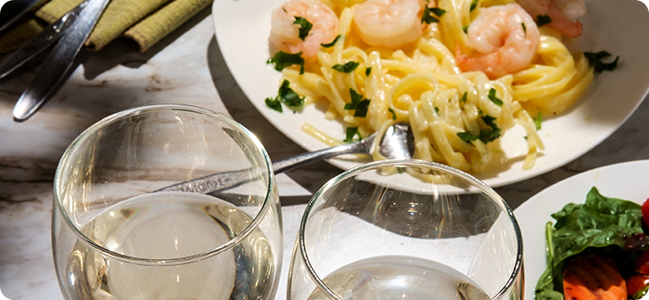 Cream sauce, buttery fish, pasta salad and fatty and/or creamy flavors