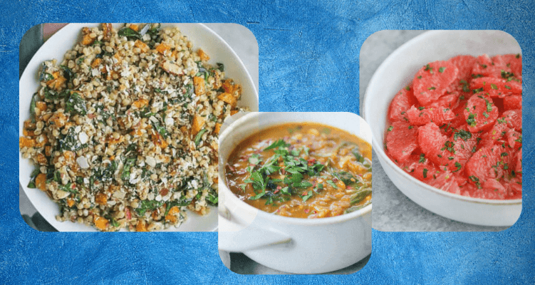 Winter Wheat Berry Salad with Roasted Squash | The Lentil Soup (to make you love lentil soup) | Miso Glazed Salmon | Cauliflower Steaks with Chimichurri Sauce | Grapefruit Mint Salad