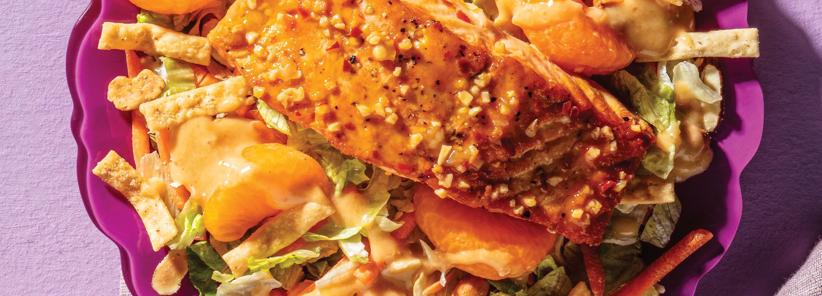 - Prepare salad kits according to instructions. Serve with glazed salmon and garnish with mandarin orange slices.