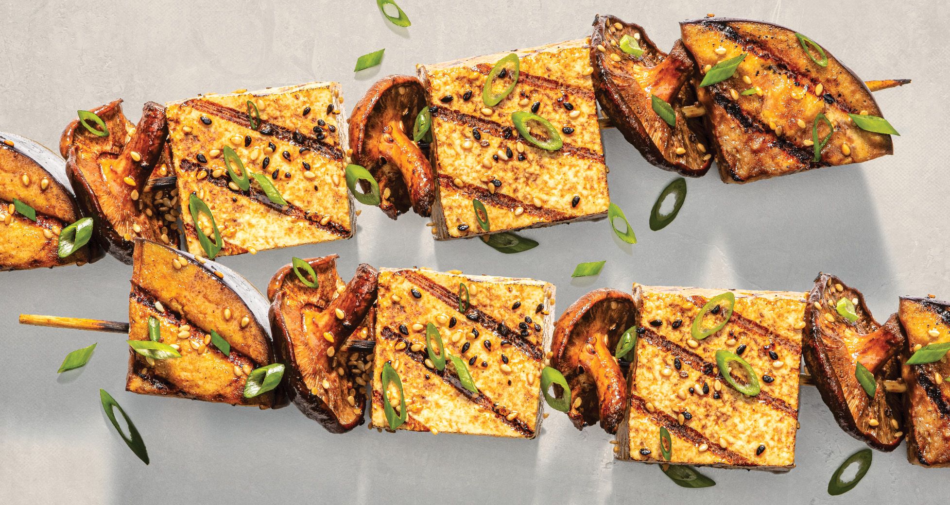 These vegan kabobs feature a combination of mushrooms, tofu and eggplant flavored with a delicious balsamic marinade, resulting in a hearty, satisfied grilled dish.