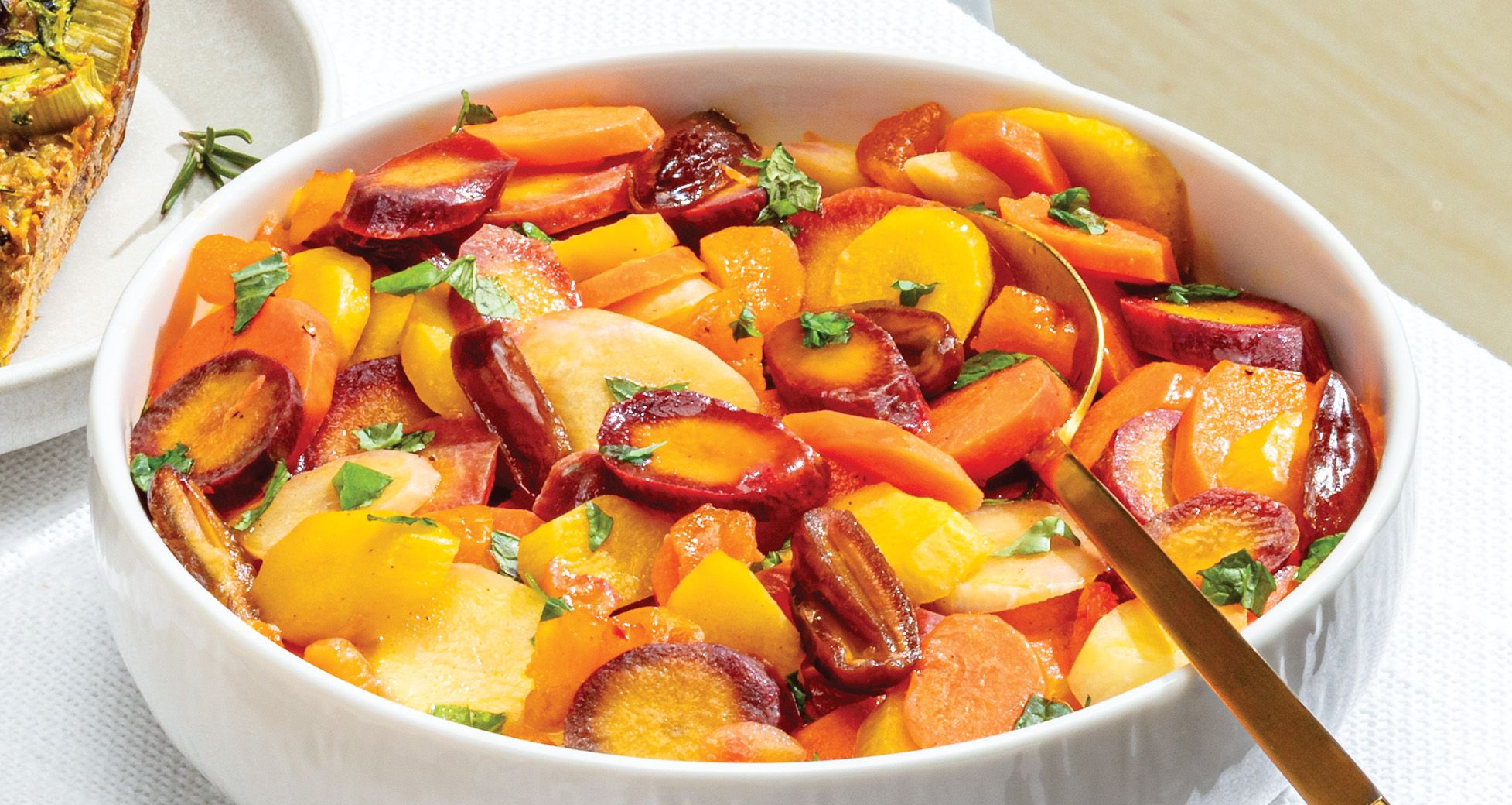 - In a large skillet, melt butter over medium-high heat. Stir in carrot, apricots and dates until coated. Stir in orange-juice mixture; cook until sauce is reduced by half and syrupy, 8–10 minutes. Serve immediately, garnished with mint and parsley.