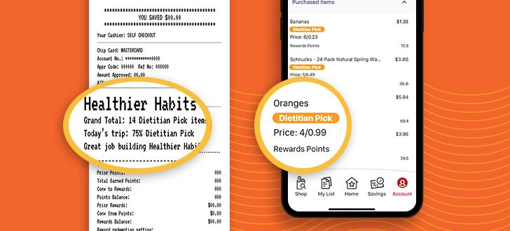 Keep track of your shopping habits with Healthier Habits summaries found on your printed or digital receipt each time you shop, plus get monthly email recaps.